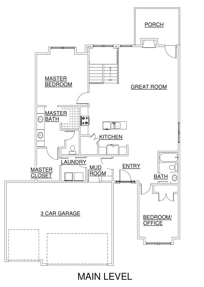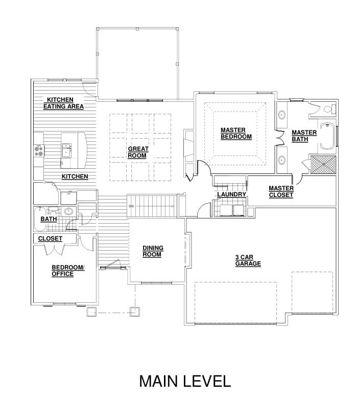 Formal dining room or flexible office space on the main floor plan.