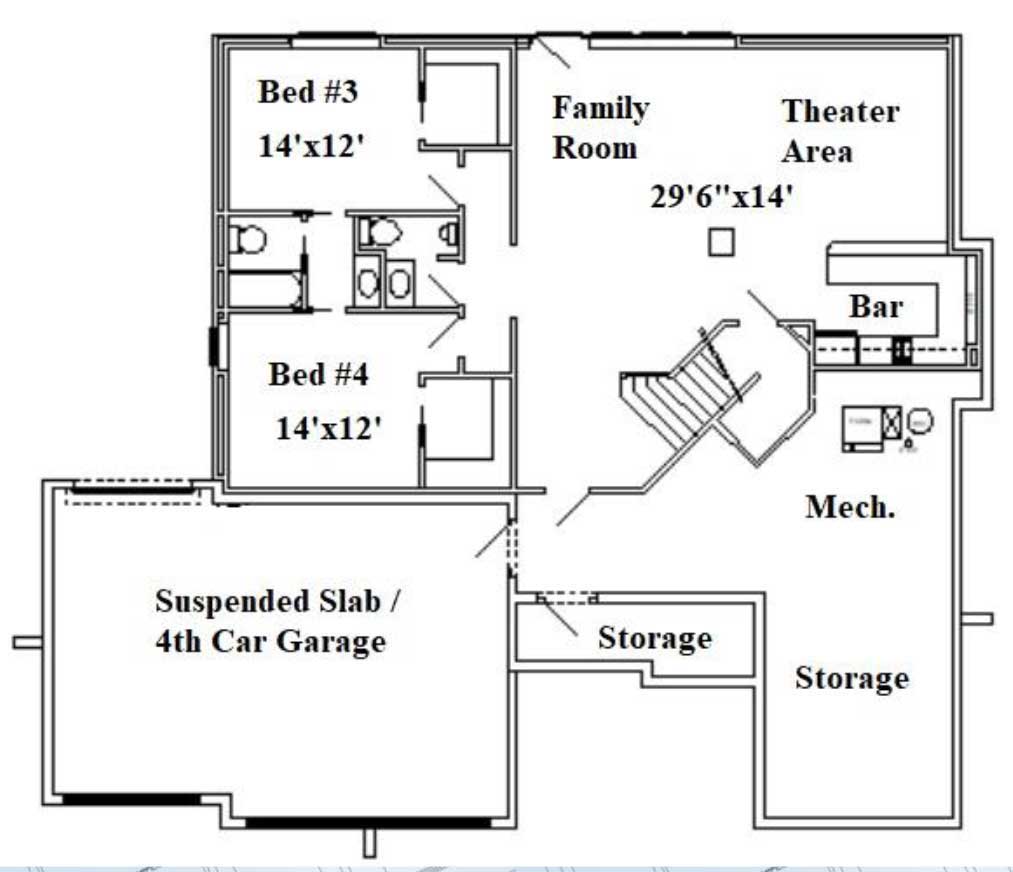 - Lower level features a huge family room, theater area, and wet bar
