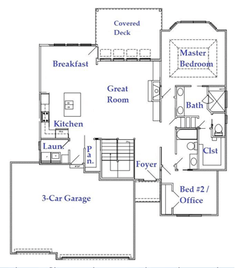 This reverse 1.5 story floor plan has everything you need including a ceiling fan in every bedroom, patio, and covered deck with ceiling fan and light kit. Optional Zero Entry (no steps) for the front door, garage entry, or master