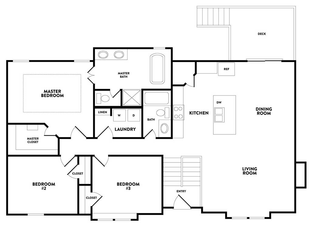 Elevate Design + Build, a division of TruMark Homes offers a functional and affordable split entry called The Timber Rock. It includes beautiful stained pine boxed beams in the living room and kitchen. You’ll also find enameled shiplap behind the master tub and in the master bedroom ceiling vault.